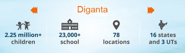 The Diganta-the Hands of Love implements the Government of India's PM POSHAN Abhiyaan, serving 2.25 million+ children across 78 locations in 16 states & 3 UTs with fresh, nutritious mid-day meals every school day.